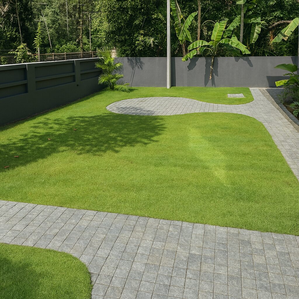 A tranquil tropical-modern landscape designed for Mr. Ansar in Kodungallur — blending architecture and greenery in perfect harmony. This project transforms both indoor and outdoor zones into a seamless green retreat, offering peace, balance, and elegance at every corner.