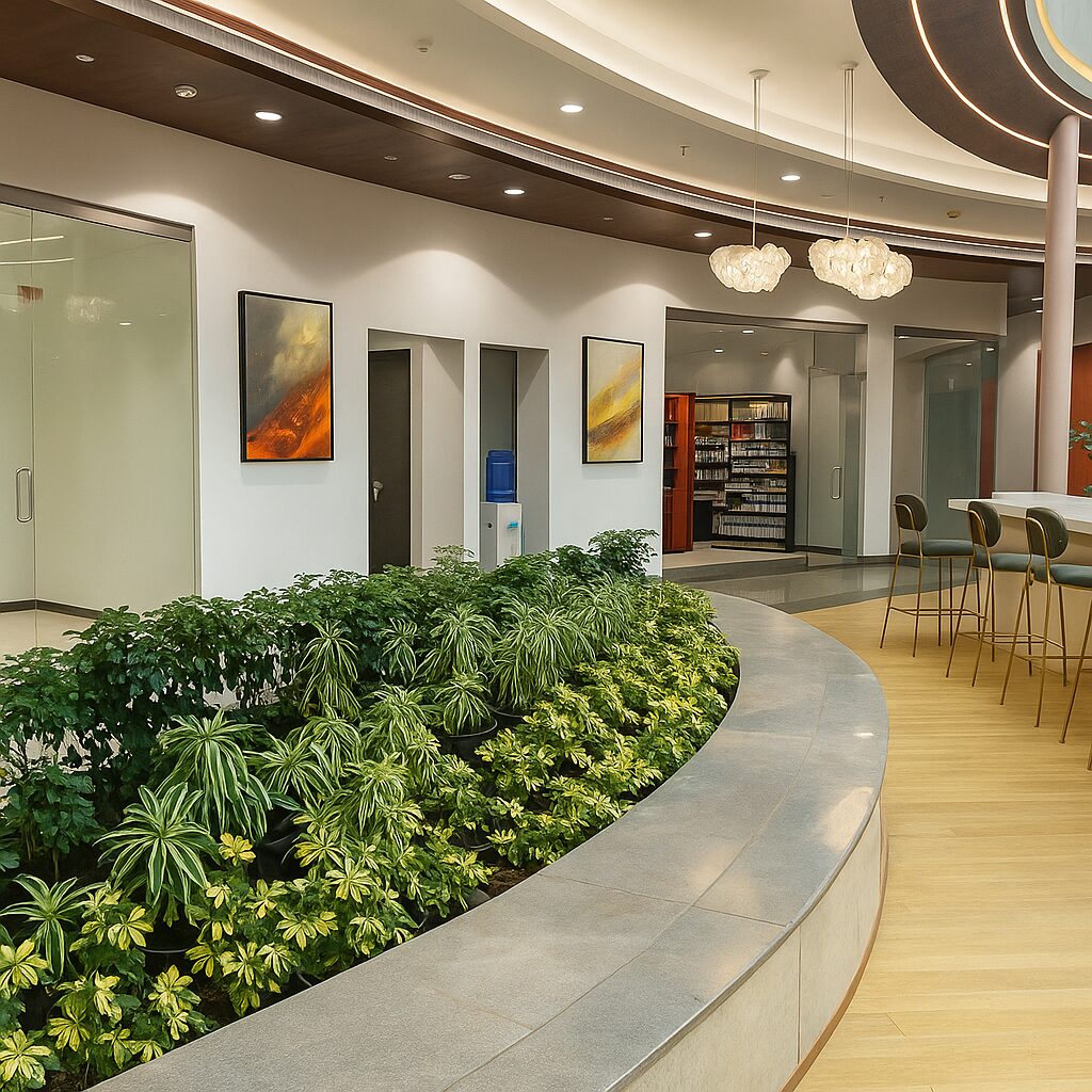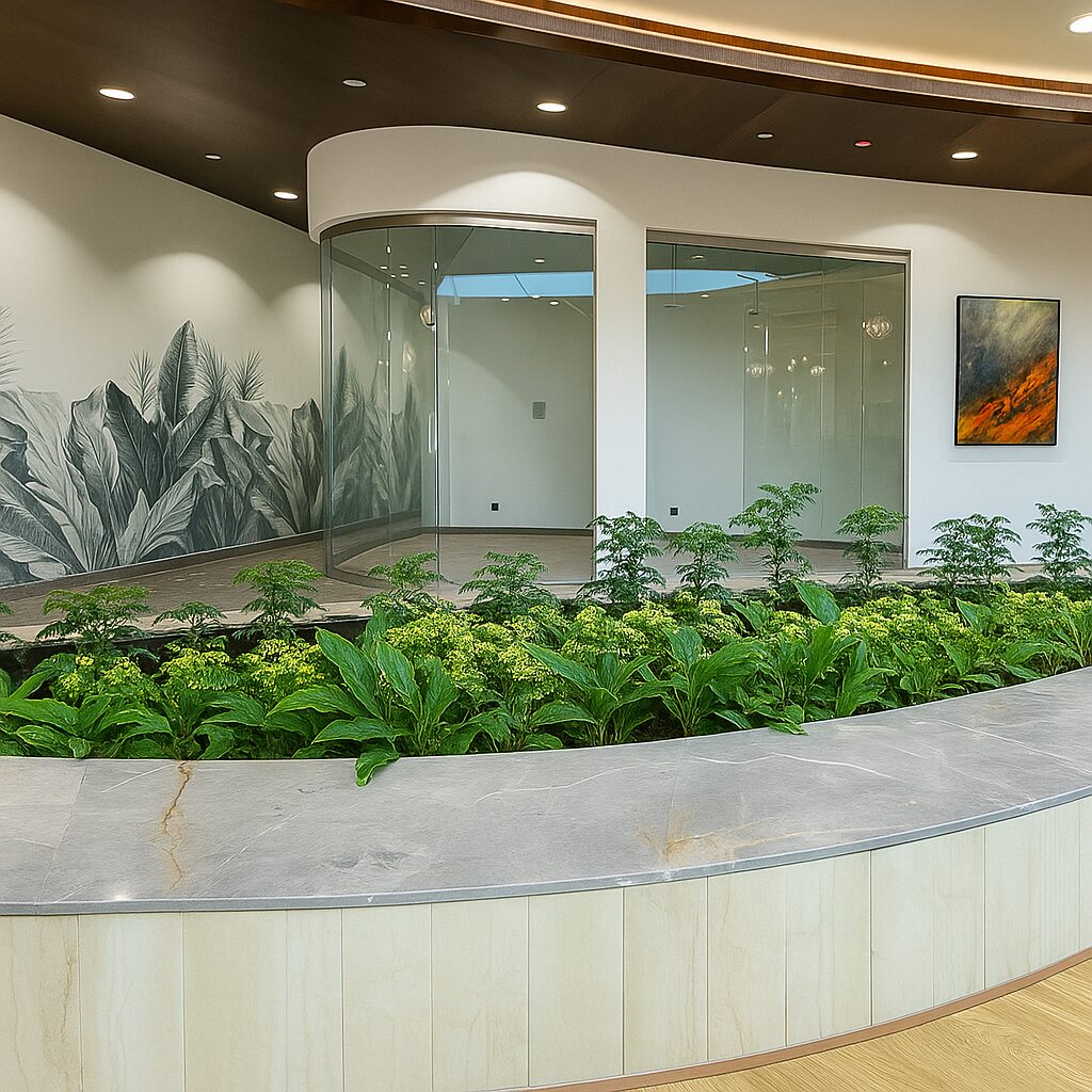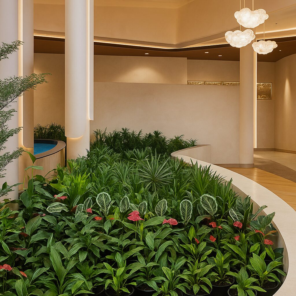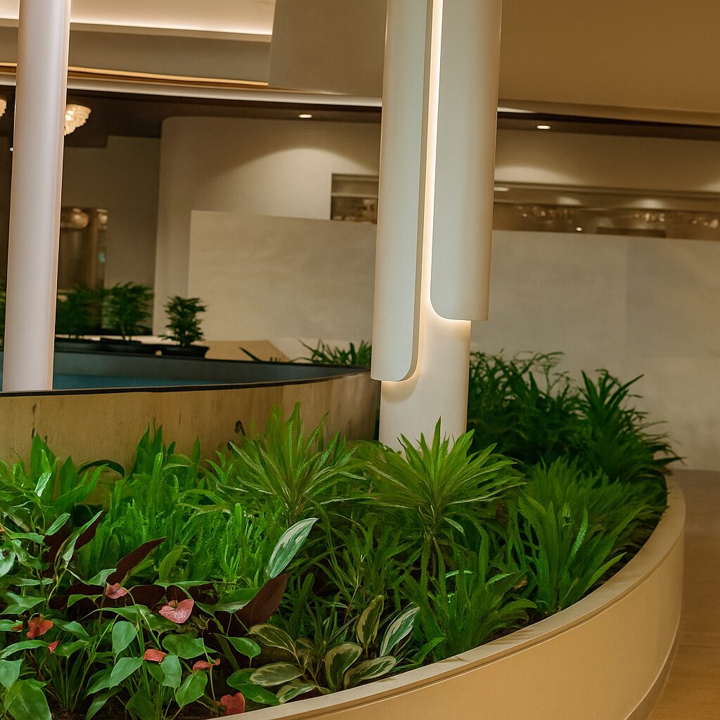 The entire indoor landscape setup — from concept to final planting — was completed in less than 15 days, coordinated with architectural finishing schedules.