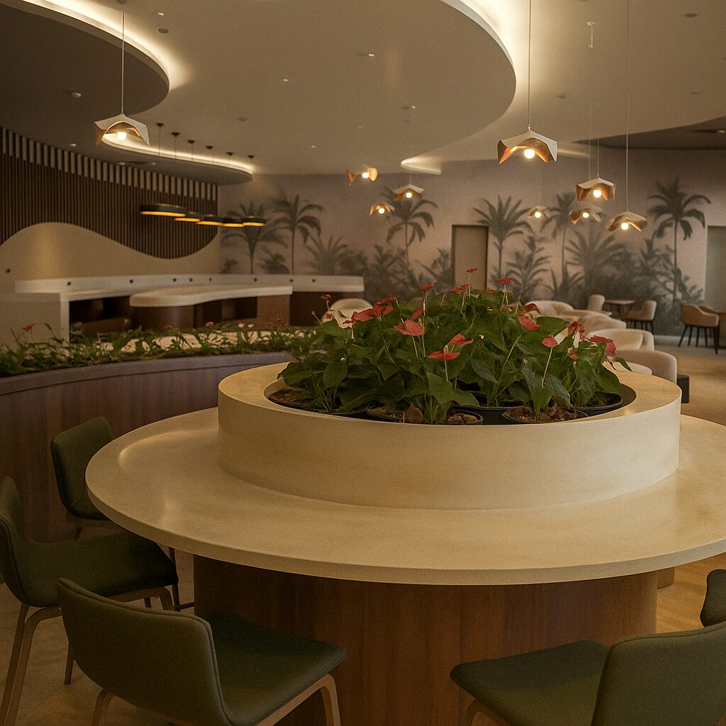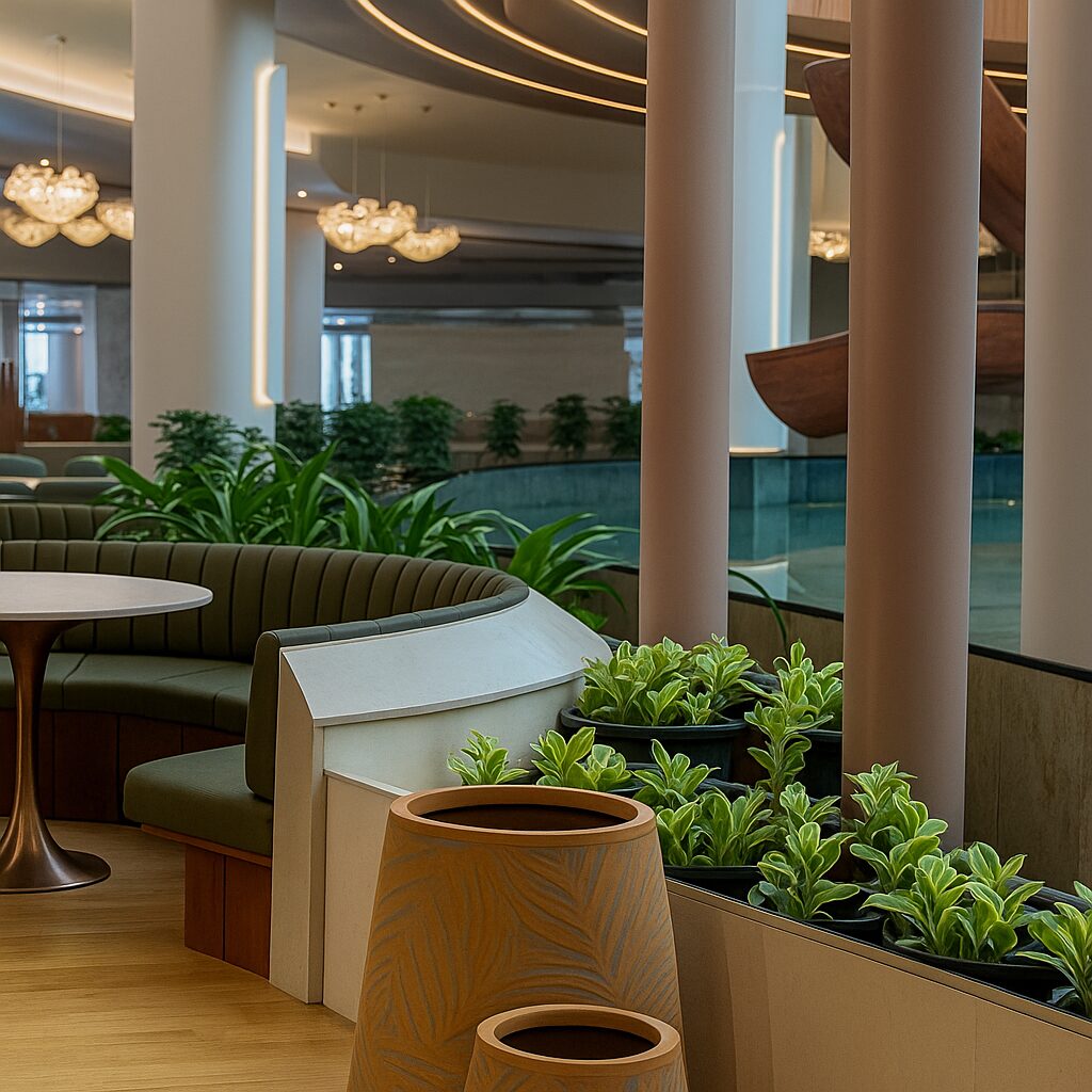 Mood Enhancement: Soft greenery complements ambient lighting, providing guests with a calm, oxygen-rich atmosphere.