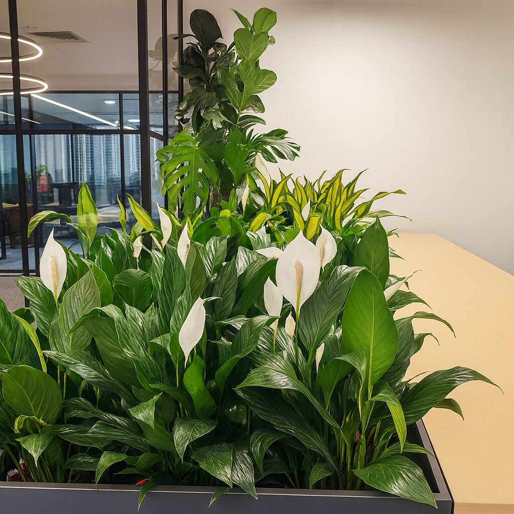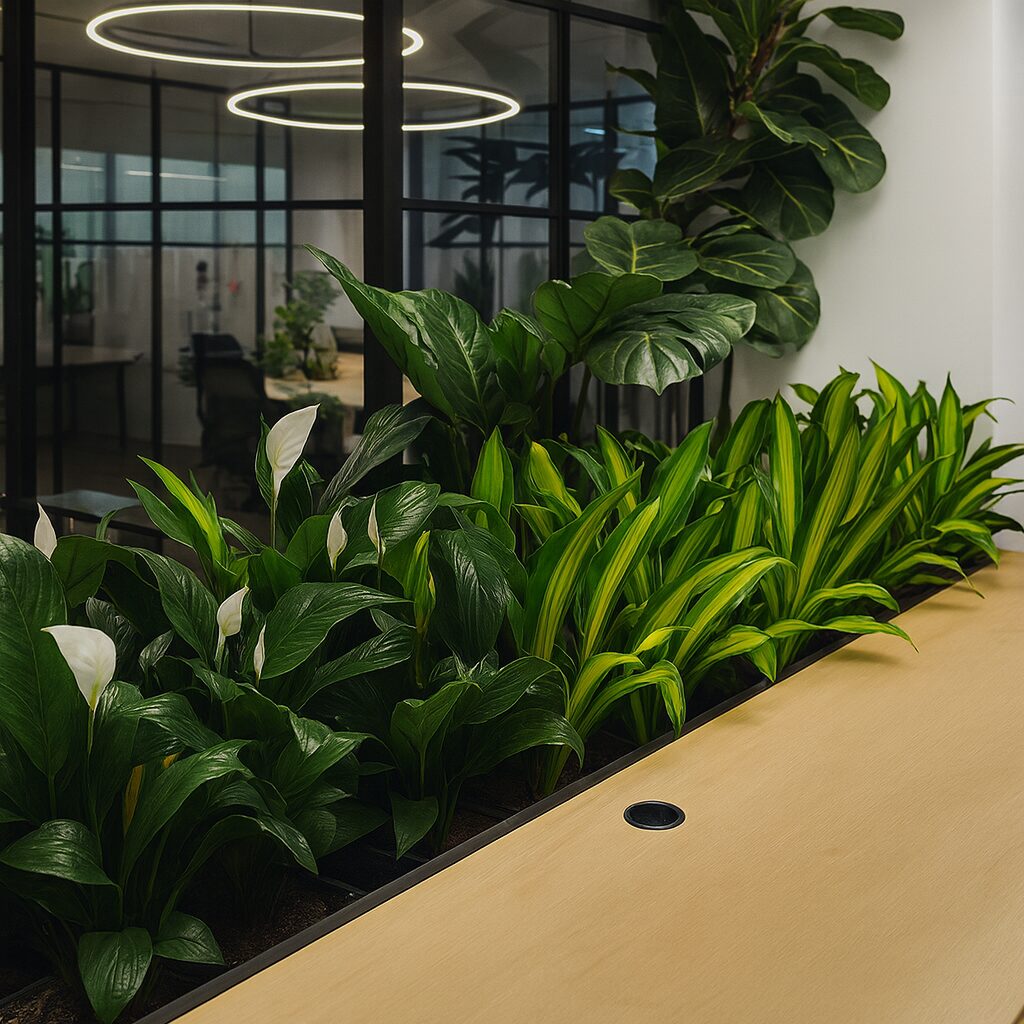 To create a work environment that naturally integrates plants for visual calmness, improved air quality, and reduced workplace stress.