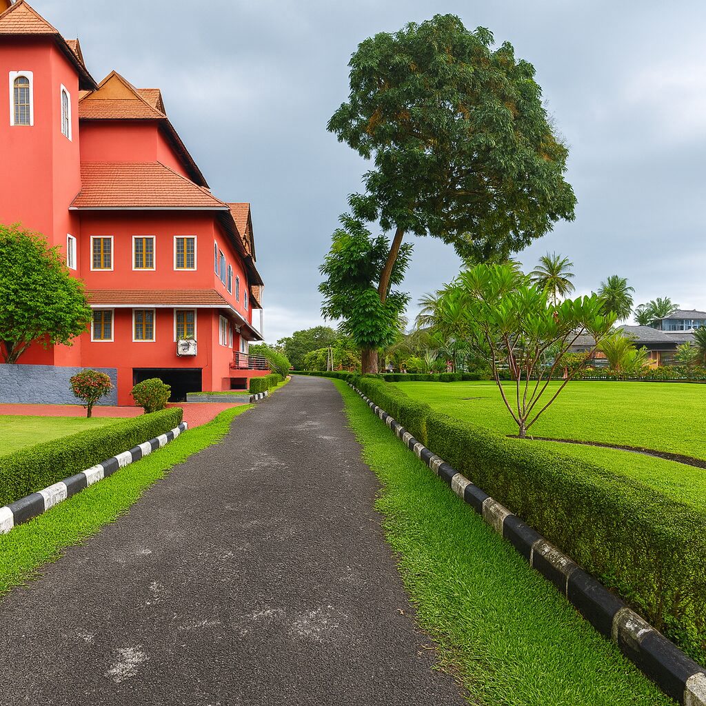 The Kerala Judicial Academy, Athani, features a vast and well-planned institutional garden characterized by broad lawns, neatly trimmed hedges, and tropical palms framing the red traditional-style building. Hug A Plant has been entrusted with the ongoing landscape maintenance of this prestigious property, ensuring its lush green appeal and orderly presentation are preserved year-round.