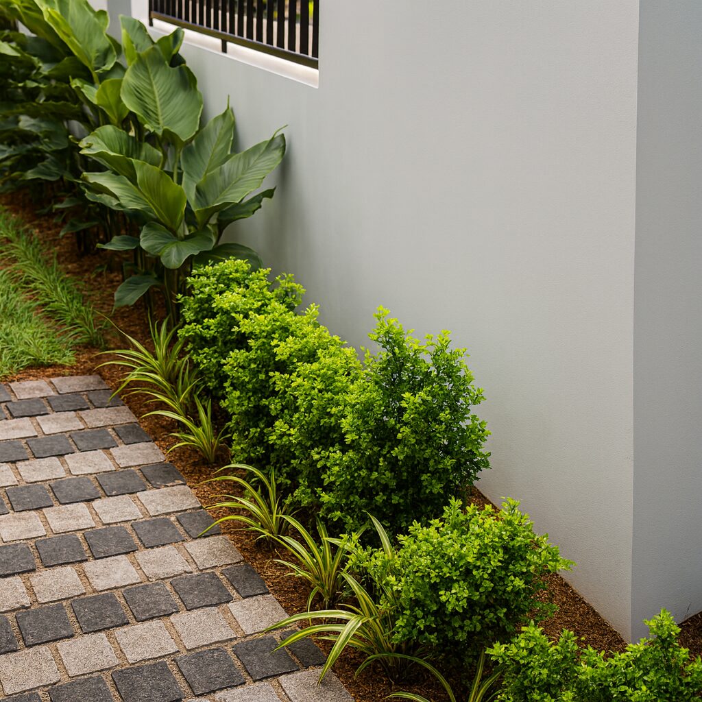 A refined residential landscape crafted for Mr. Abhijith, Pallikkara, blending modern simplicity with tropical freshness. This design captures the charm of a Kerala home through neat geometry, soft textures, and lush green borders — creating a calm outdoor environment that enhances both aesthetics and privacy.