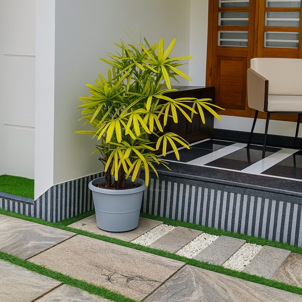 • Pot & Planter Care: Cleaning, repotting checks, and maintaining visual symmetry of potted plants near the entrance and walkway.
