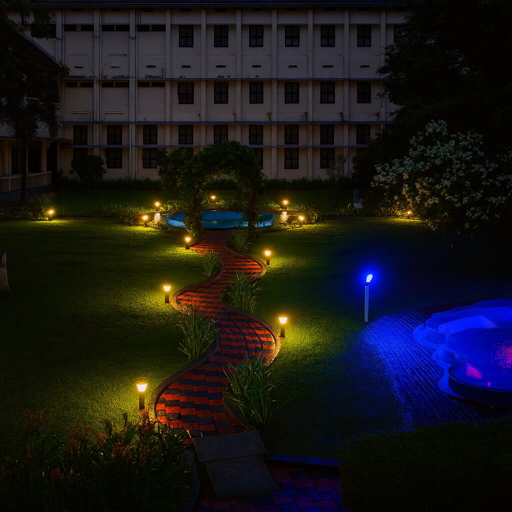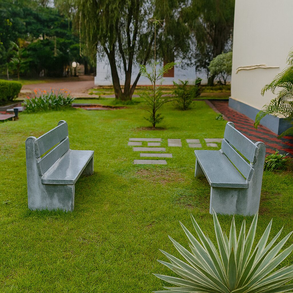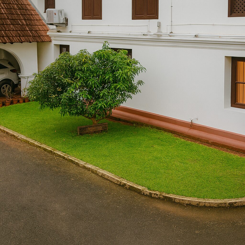A timeless institutional courtyard landscape designed for Orthodox Theological Seminary, Kottayam, blending the heritage elegance of colonial architecture with the freshness of tropical greenery. The design celebrates serenity and order — creating an inviting environment for reflection, learning, and quiet communion with nature.